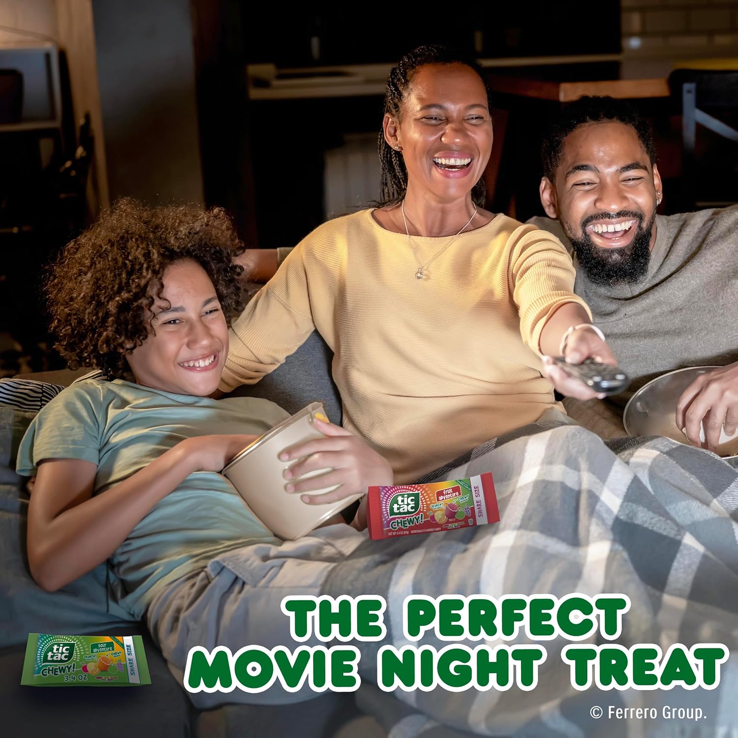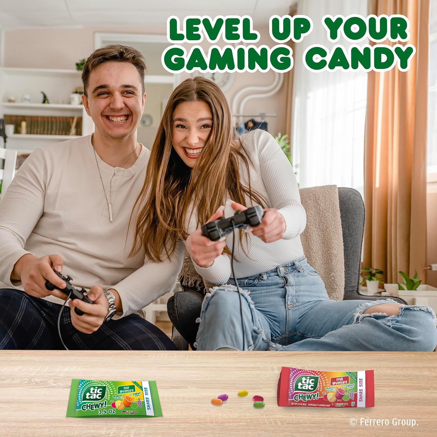 Bite into the fruity fun of TIC TAC CHEWY! Candy. Enjoy a layer of pure crunchiness surrounding a deliciously intense fruity and chewy center that will bring a bit of fruity fun to your day. Your taste adventure is waiting with 50+ layers of gently sour or intense fruity flavors in each orange. lemon. apple. cherry and grape flavored crunchy. chewy gummy candy. Delight your taste buds with the mouthwatering fruity blend of Fruit Adventure or indulge in the zesty. sour fruity blend of Sour Adventure. The flavors are fruity. while the colors are made from natural sources. That’s a sweet win-win. You have found the perfect chewy fruity candy that will dazzle your taste buds with every delicious bite. This 8 pack of crunchy. chewy candy fruity treats is great to share with your besties and also makes excellent movie candy. gaming treats. office candy bowl fillers. and a perfect on-the-go treat. Start your taste adventure with the crunchy. chewy deliciousness of TIC TAC CHEWY!?