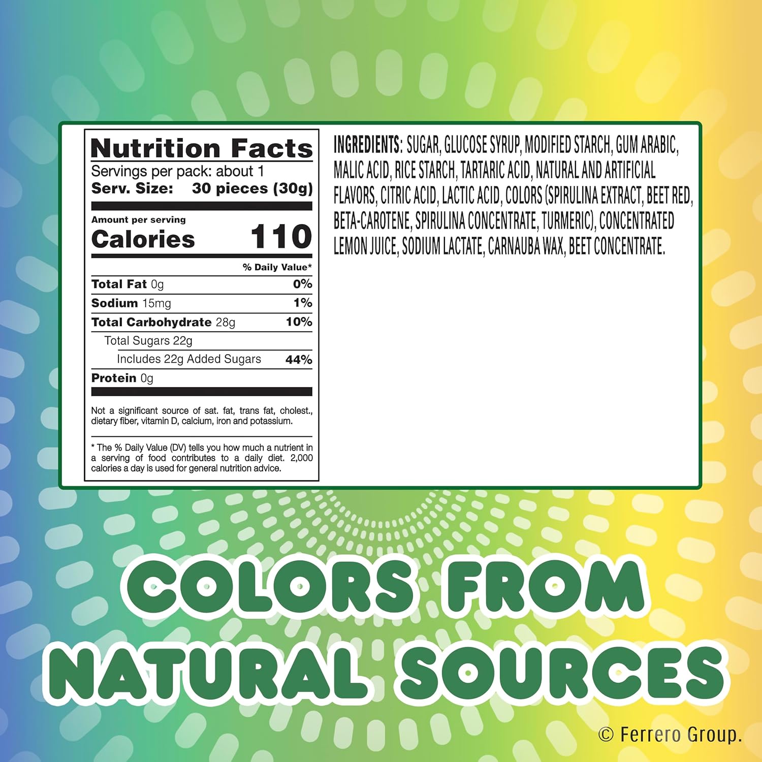• FRUITY CANDY DELICIOUSNESS: Start with a crunch and continue with a mouthwatering fruity candy chew? that’s made with colors from natural sources. is gluten-free and does not include GMO ingredients